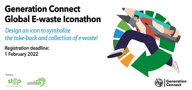 ITU is pleased to announce the first Generation Connect Global E-waste Iconathon. The E-waste Iconathon is an icon design contest that aims to raise awareness about the global e-waste issue and leverage the participation of youth globally. Young people of ages 18-29 are invited to participate and design a universal icon that signifies the take-back and collection of e-waste for recycling purposes. The contest is in line with the Generation Connect mission to engage youth and encourage their participation as equal partners alongside the leaders of today's digital change, empowering young people with the skills and opportunities to advance their vision of a connected future.