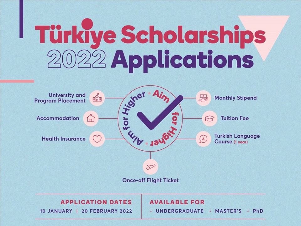 Türkiye Scholarships applications for 2022 will be received in one period, and applications will be open between 10th January- 20th February 2022 for international students from all countries.