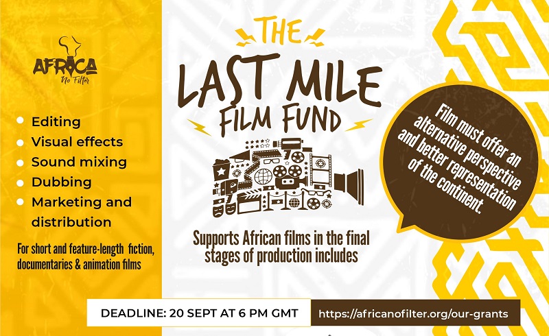 Africa No Filter is launching the Last Mile Film Fund to finance African filmmakers who are working on the last steps of their projects. The Last Mile Film Fund offers grants of up to $15,000 for feature-length films and up to $10,000 for short films.