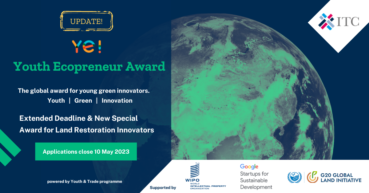 ITC looking for young changemakers in the green economy who are building solutions to create a more sustainable world. If you are a young ecopreneur with a fervent commitment to sustainability and a determination to effect positive change, we want to see your application! If you are active in land restoration, please apply to our newly announced special award on land restoration!