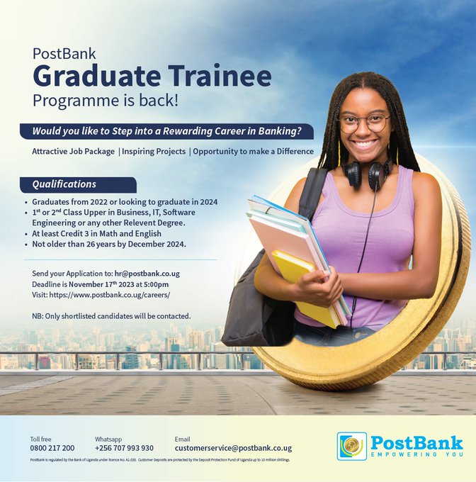 Send your Application to hr@postbank.co.ug